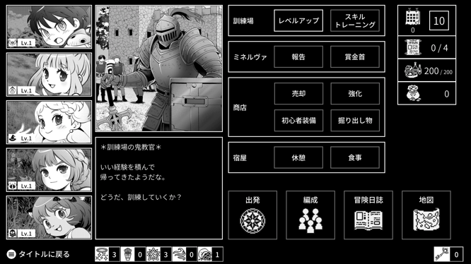 - モンスターを倒して経験値を稼げば、ここでレベルアップが可能です。