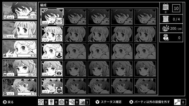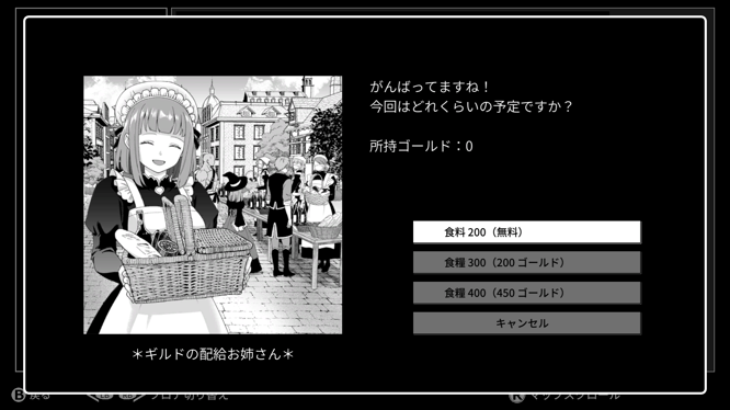 - 戦闘中や戦闘後にも食糧を消費することがあります(詳しくは戦闘の項目にて)。