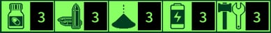 バトルリソースとは「薬品/弾丸/爆薬/電池/小道具」の5種類のことで、たとえば拳銃で射撃するためには弾丸を消費したり、改造掃除機から火炎放射を行うためには爆薬と電池を消費したりします。
