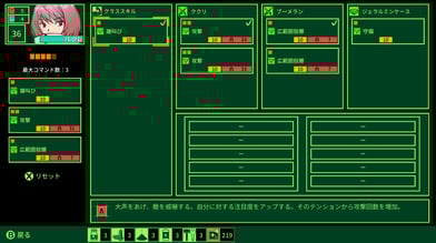 いわゆるターン制コマンドバトルに近いですが、1ターンにAPが許す限り最大3つまでのコマンドを入力できます。