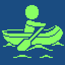 When a player moves from a pier to a body of water, the player symbol changes to a canoe, allowing the player to explore the body of water.