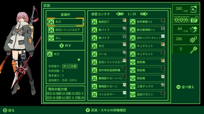 You can also check the status of retained equipment for your current playthrough.